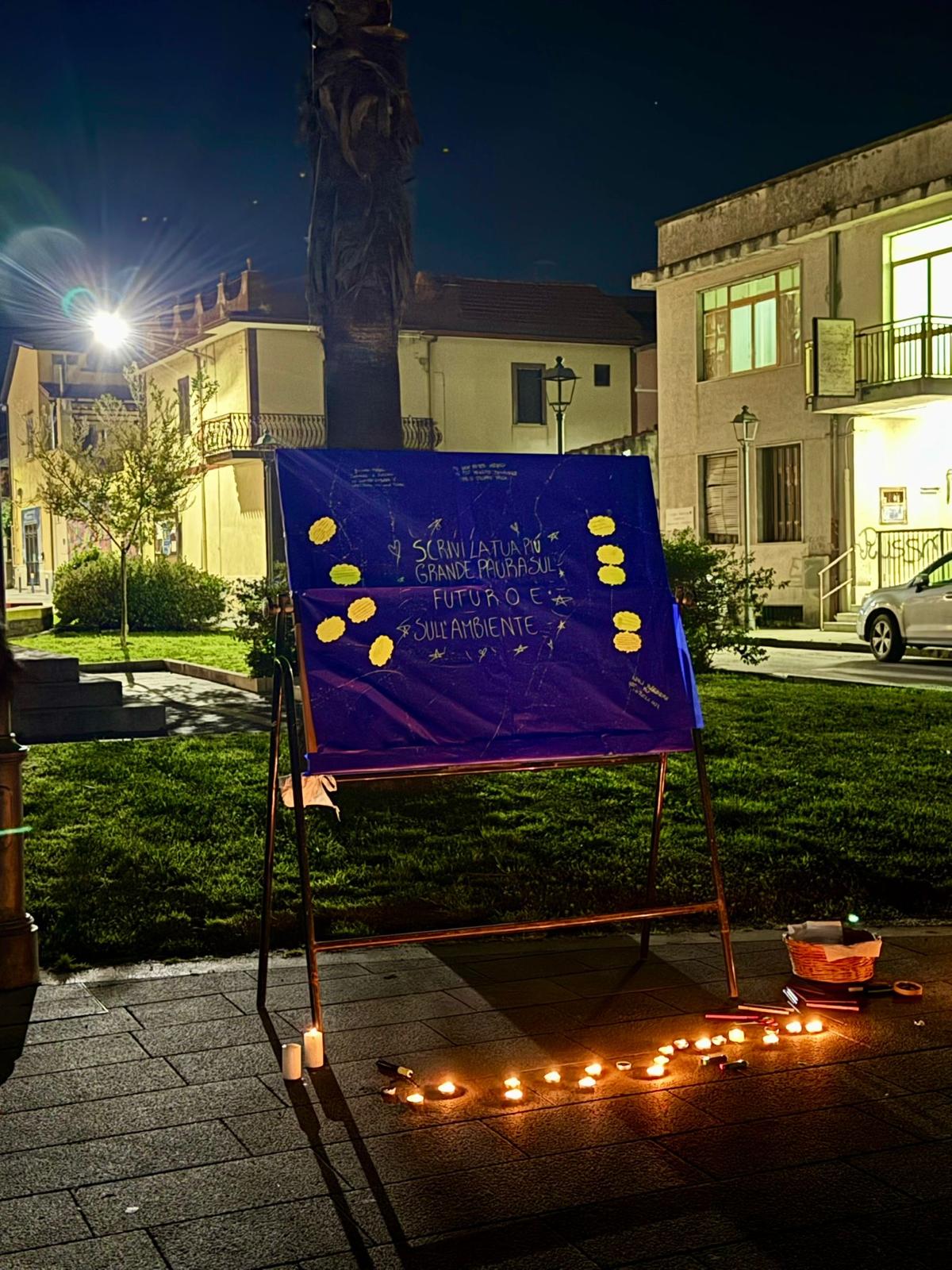 28.03.2026 : Earth Hour - Casagiove In Piazza degli Eroi a Casagiove Forum dei Giovani e gli scout hanno dato vita ad Earth Hour. Dopo alcune drammatizzazioni , durate l'ora di buio in cui si sono spente le luci della piazza , gli oltre 30 ragazzi presenti hanno cantato e suonato con la chitarra “Il mio canto libero”, per poi passare a un momento di mindfulness collettivo dedicato all’ambiente e al futuro. Questo si è concluso con l’osservazione delle stelle, durante la quale ogni partecipante ha trovato davanti a sé una candela da accendere e portare vicino a uno stand dove poter scrivere le proprie paure legate all’ambiente e al futuro. Altre canzoni che hanno riempito l'ora di buio - “Il ragazzo della via Gluck”, “L’isola che non c’è”, “Soffierà” e “Il cielo è sempre più blu” , tutte ispirate a temi ambientali.I ragazzi hanno inoltre realizzato un grande disegno collettivo del mondo che immaginiamo, dando spazio alla creatività di tutti. La serata si è conclusa con un gesto simbolico: abbandonare una cattiva abitudine e prendere una frase (tipo proposito) che conteneva dei semi (girasole e nasturzio nano) da coltivare.
